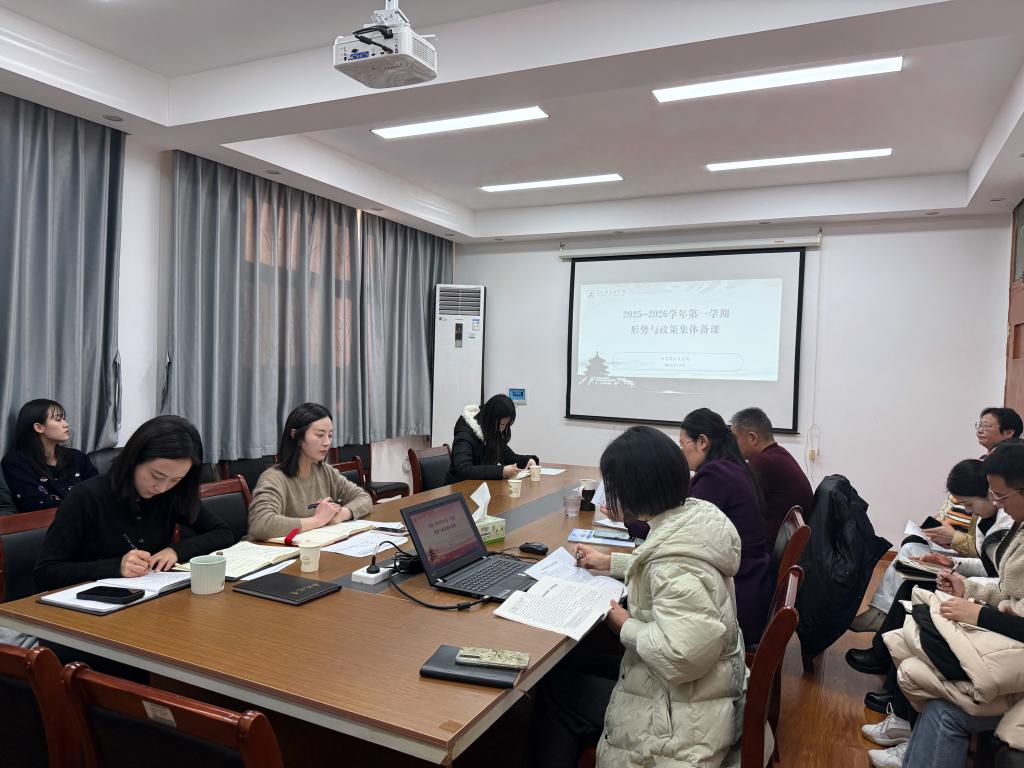 为贯彻落实党的二十届四中全会精神,及时准确地把时事热点问题融入课堂教学,提升思政课的时效性和感染力,12月24日,漯河职业技术学院马克思主义学院举办2025—2026学年第一学期形势与政策集体备课会,学院全体思政课教师参会。