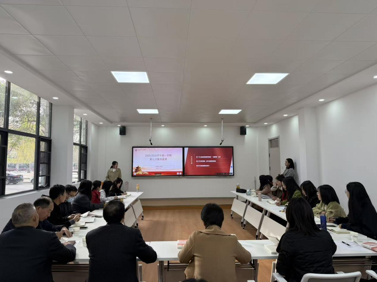 为深入学习贯彻落实党的二十届四中全会精神和习近平总书记对学校思政课建设的重要指示精神,提升思政课教师教育教学水平,11月26日,漯河职业技术学院副校长石晓深入马克思主义学院参加2025-2026学年第一学期第七次集体备课会。本次备课会由教研室主任郭亦佳主持,马克思主义学院全体思政课教师参加。